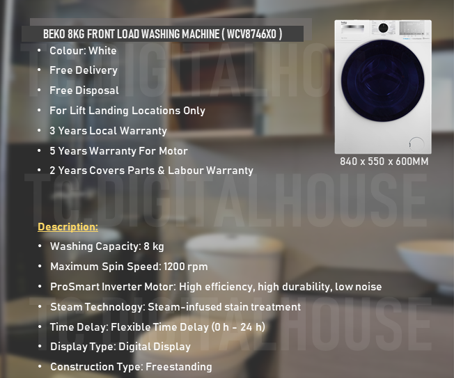 Beko 8kg WCV8746X0 Front Load Washing Machine
