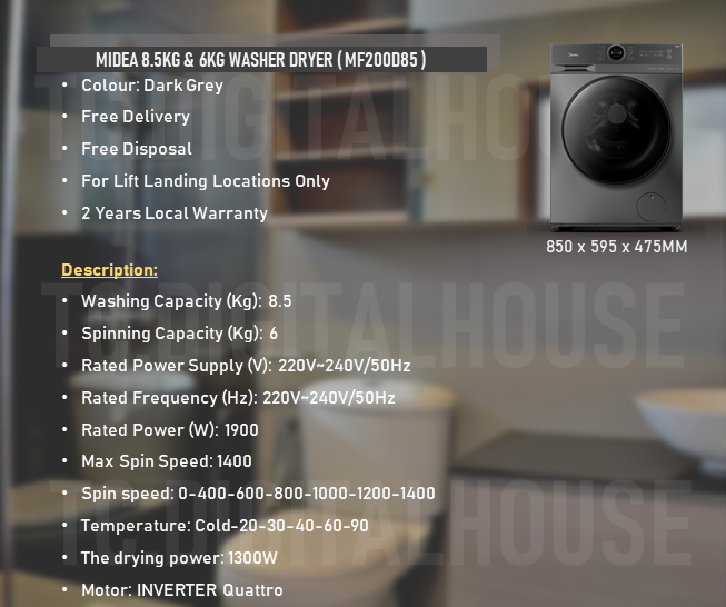 Midea MF200D85 8.5kg & 6kg Washer Dryer